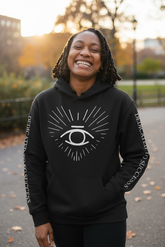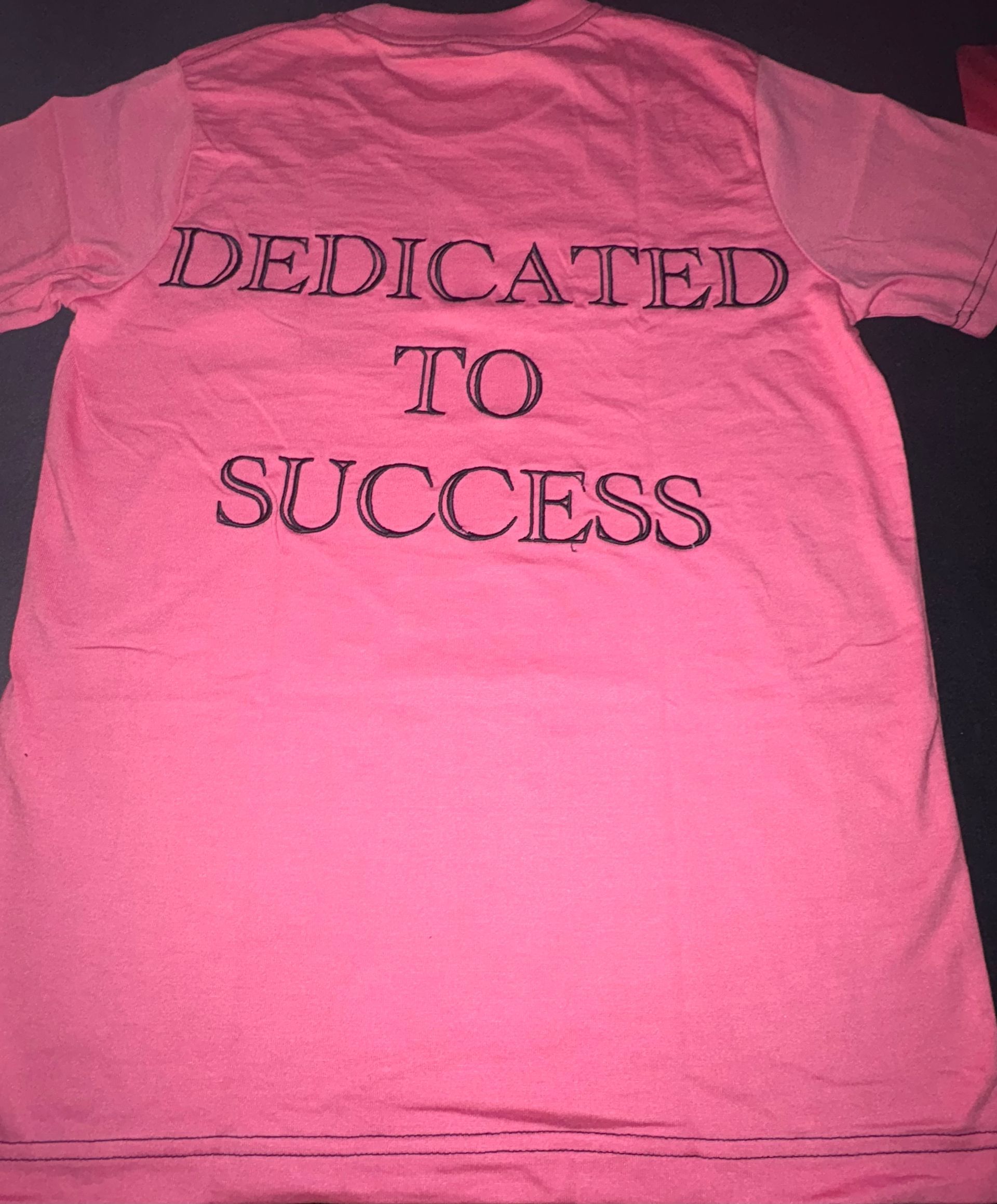 Back Of Hoodie: Outter Shape Of Logo With Dedicated To Success Inside Of The Heart